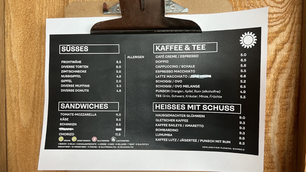 Vorab Gletscherrestaurant Menu